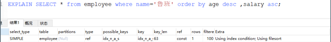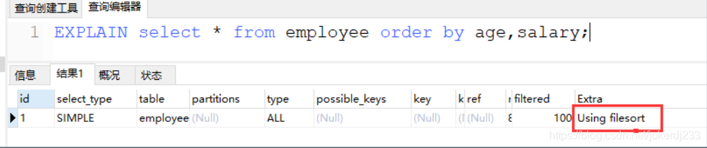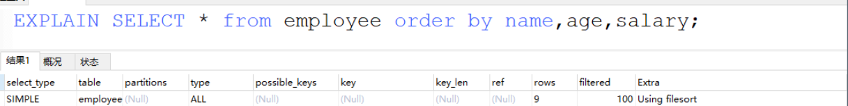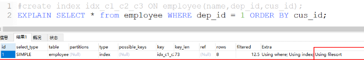 使用order by排序时, 如果没有按照索引顺序,会出现Using filesort