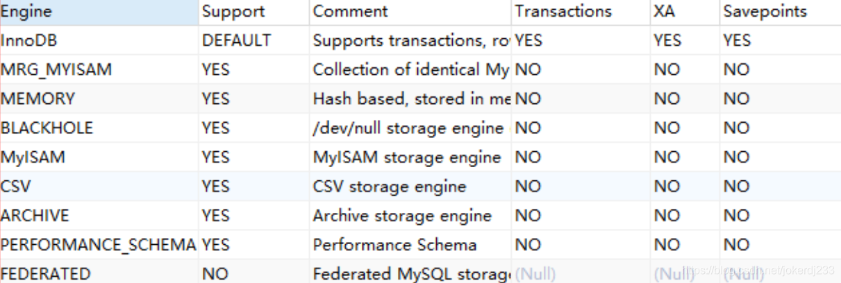 存储引擎是真正负责MYSQL中数据的存储和提取,服务器通过API与存储引擎进行通信 不同的存储引擎提供的功能不同,可以根据自己的实际需求来进行选取