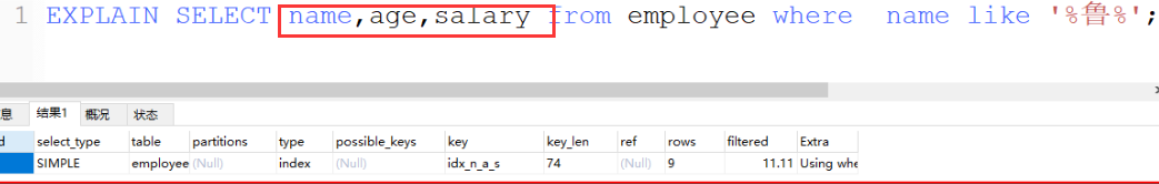覆盖索引 查询的字段和建立的字段刚好吻合,这种我们称为覆盖索引