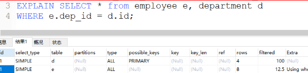 SELECT * from employee e LEFT JOIN department d on e.dep_id= d.id;