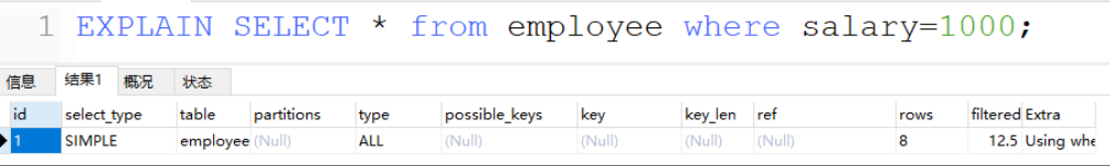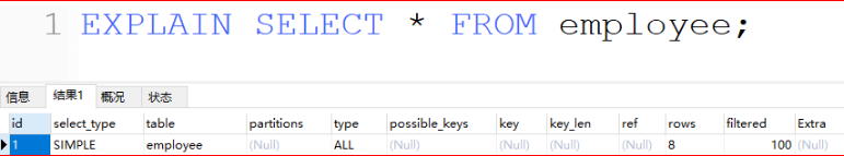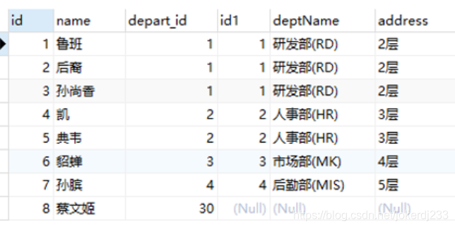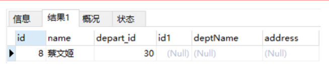 INSERT INTO `employee` VALUES ('8', '蔡文姬', '30', '35', '4000.00', '1');图示