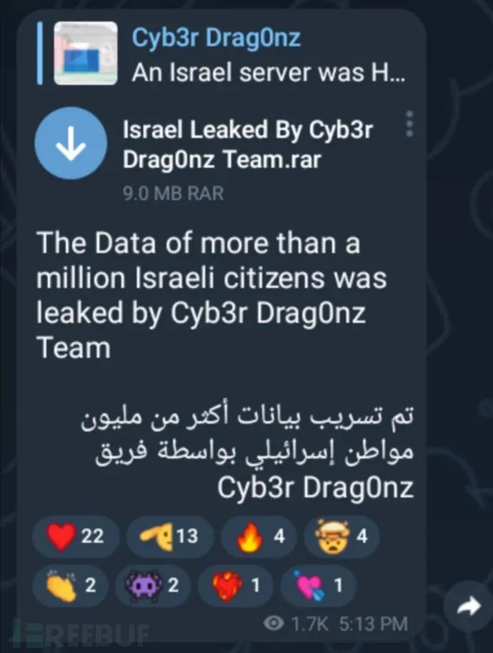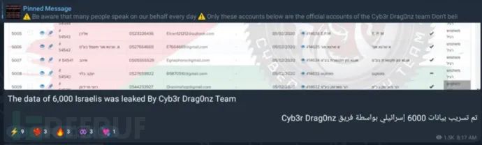 最近,该组织在 Telegram 频道中宣布已经窃取超过 100 万以色列人的个人信息。