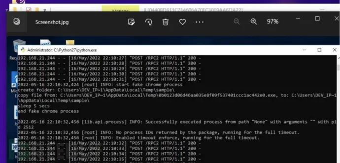 攻击者泄露的另一张截图,可以根据运行的文件名为 SHA-1 哈希值(0b0123d06d46aa035e8f09f537401ccc1ac442e0)查找到样本文件。该文件是 2019 年 Redline Stealer 公开的样本文件,并不是本次攻击行动所独有的。