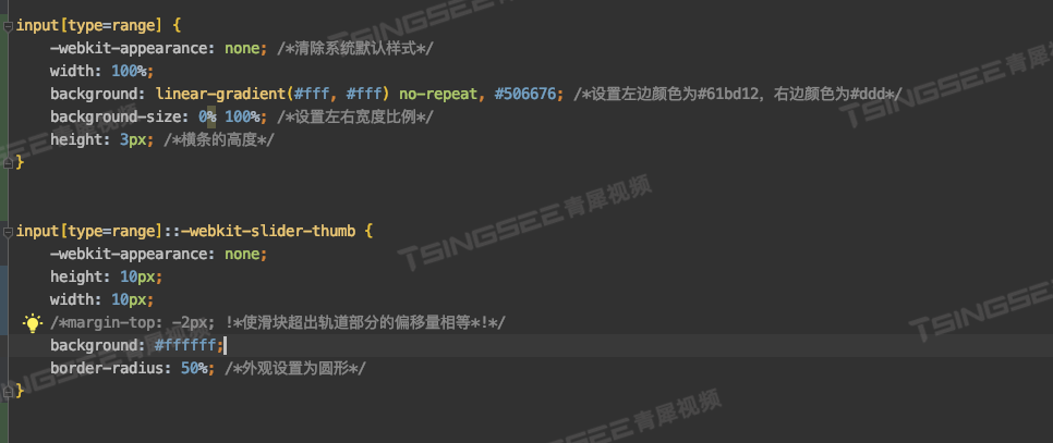1、由于播放器的进度条是input设置,type为range属性来实现的,而当前样式为默认样式,则需要优化修改默认样式;