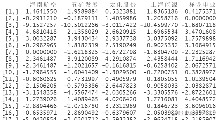 X = timeSeries(X0[, col])创建一个时间序列对象X,其中包含了X0数据集的选定列。X将用于后续操作。