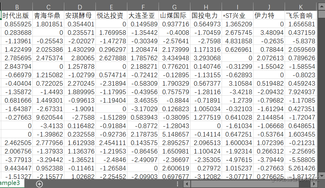 读取名为"sample2.csv"的CSV文件,并将其存储在变量X0中。然后,计算X0数据集的行数,并加载了两个R包:fPortfolio和tseries。最后,根据随机选择的列索引,创建一个时间序列对象X,其中包含了X0数据集的选定列。
