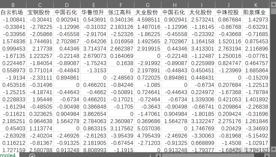 X0 = read.csv("sample1.csv")读取名为"sample1.csv"的CSV文件,并将其存储在X0变量中。该文件包含了用于投资组合分析的数据。