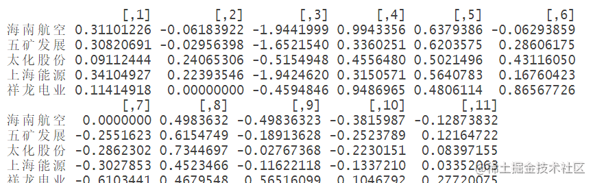 exr对ex的每一列求和,得到预期收益率的向量exr。