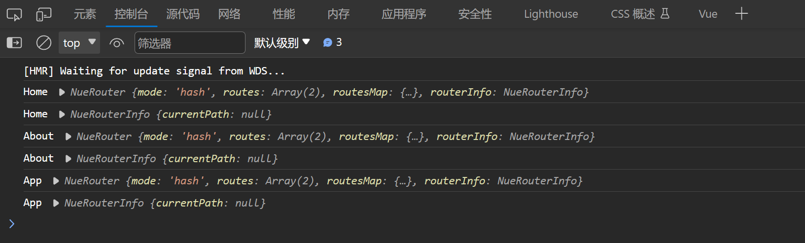 可以看到我们的路由信息已经挂载到 Vue 实例上了。