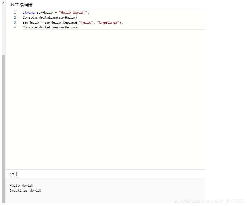 Replace 方法需要使用两个参数。 这两个字符串用括号括住。 第一个字符串是要搜索的文本。 第二个字符串是替换后的文本。