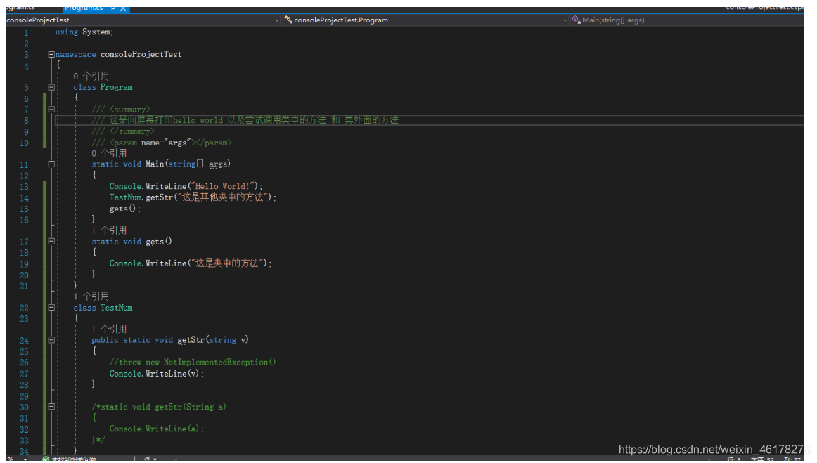 /// 文档注释, 在类或方法前面输入///会生成文档注释,对项目进行解释