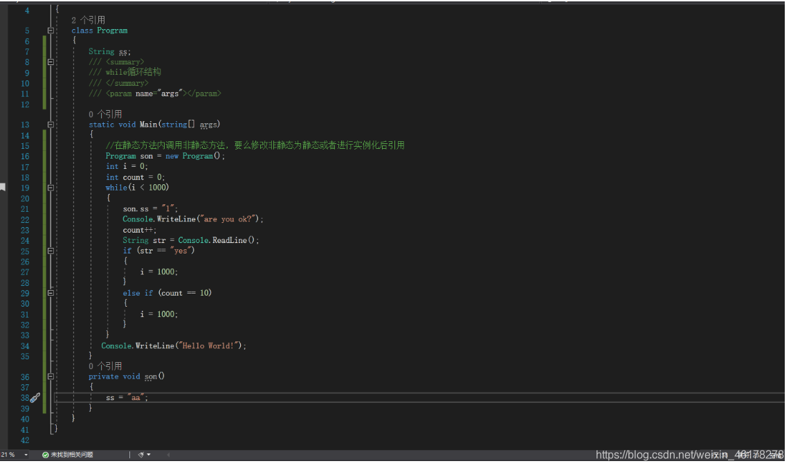 说明该类的中方法没有static 不是静态的.有非静态的字段、方法或属性,要求该类必须实例化。