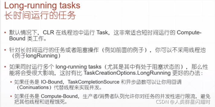 对于长时间任务,并不适合使用线程池,会造成比较大的性能影响。