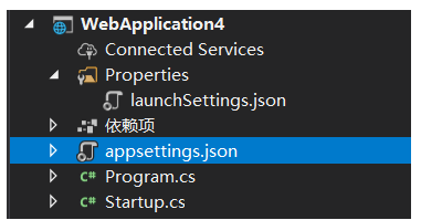 当我们使用空项目模板或Razor页面或MVC模板或Web API模板创建ASP.NET Core Web应用程序时,Visual Studio会自动为我们创建appsettings.json文件,如下图所示。