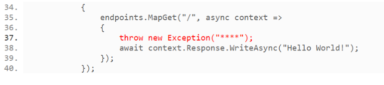 如您在上面的代码中看到的,我们正在使用一个名为SourceCodeLineCount的属性。 DeveloperExceptionPageOptions类的SourceCodeLineCount属性指定在导致异常的代码行之前和之后要包含的代码行数。