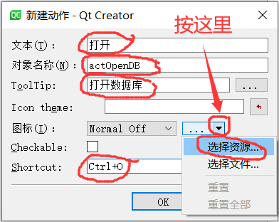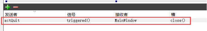 发送者选actQuit这个Action,信号选择triggered(),接收者选择MainWindow,槽选择close()