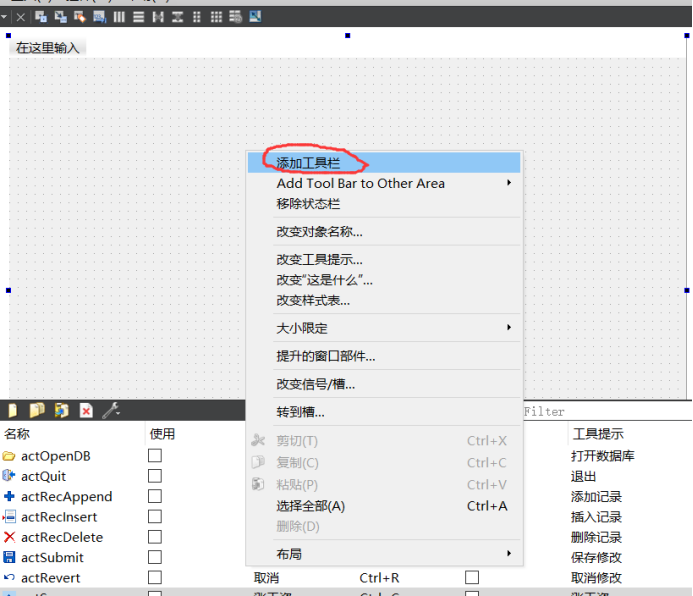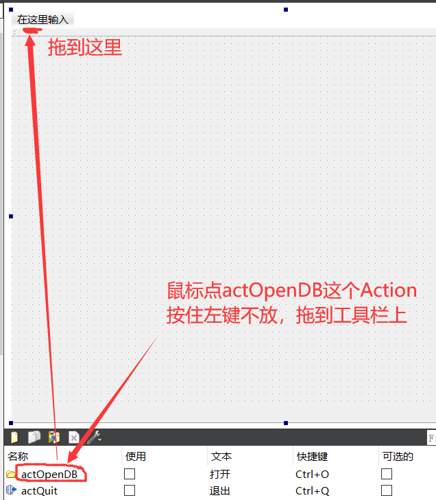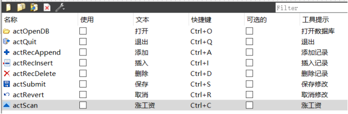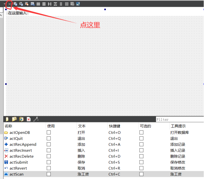 除了actOpenDB和actQuit之外,把其他的action全部改为不是enabled的