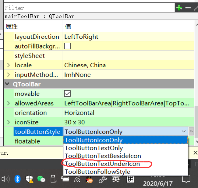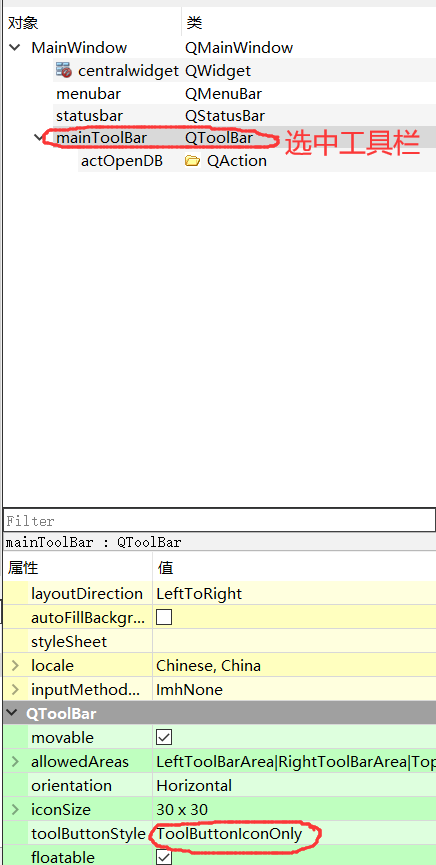修改工具栏的toolButtonStyle属性,改为ToolButtonTextUnderIcon