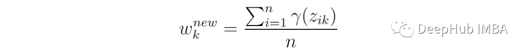 也就是说,第k个分量的新权重是属于该分量的点的总概率,用n个点的个数归一化。