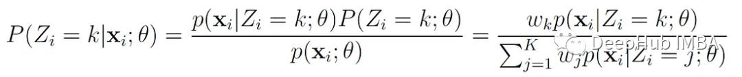 Z′= k的概率,即x′属于第k个分量,可以用贝叶斯规则计算: