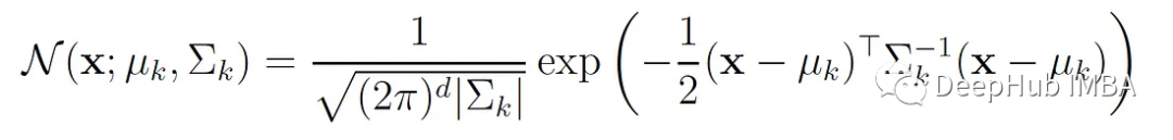 N (x;μₖ,Σₖ)为第k个分量的多元正态密度函数: