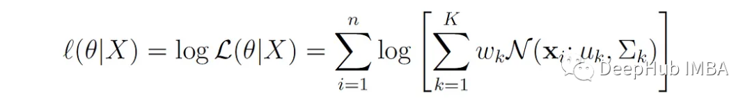 GMM的参数可以通过对θ最大化对数似然函数来估计。但是我们不能直接应用极大似然估计(MLE)来估计GMM的参数:
