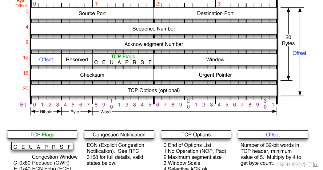 Sequence Number:是包的序号,用来解决网络包乱序(reordering)问题。Acknowledgement Number:就是ACK——用于确认收到,用来解决不丢包的问题。Window:又叫Advertised-Window,也就是著名的滑动窗口(Sliding Window),用于解决流控的。TCP Flag :也就是包的类型,主要是用于操控TCP的状态机的。一般来说,不管计算机中有多少网卡,每个网卡都会有自己的 MAC 地址,这个MAC 地址是不会变化的。而每个网卡在正常工作的情况下,都会有一个 IP 地址,这个 IP地址完全是可以变化的。而这台计算机中承载的各种应用程序可以拥有自己的端口号,然后通过服务器的网卡,正确地进行网络通信。