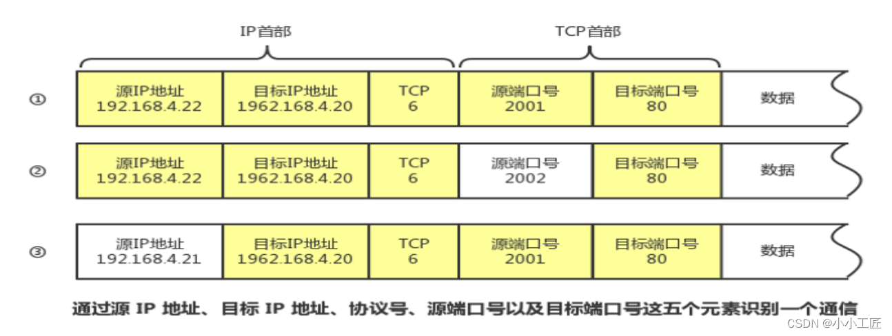 总的来说,操作系统是通过源 IP 地址、目标 IP 地址、协议号(协议类型)、源端口号以及目标端口号这五个元素唯一性的识别一个网络上的通信