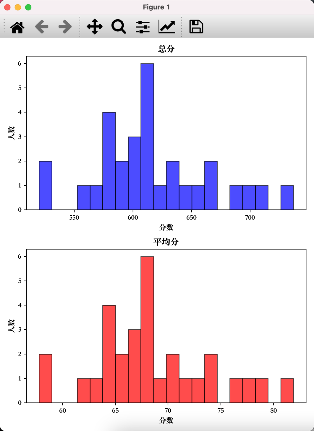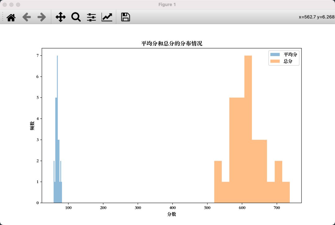 成功绘制出了总分和平均分两张分布图。