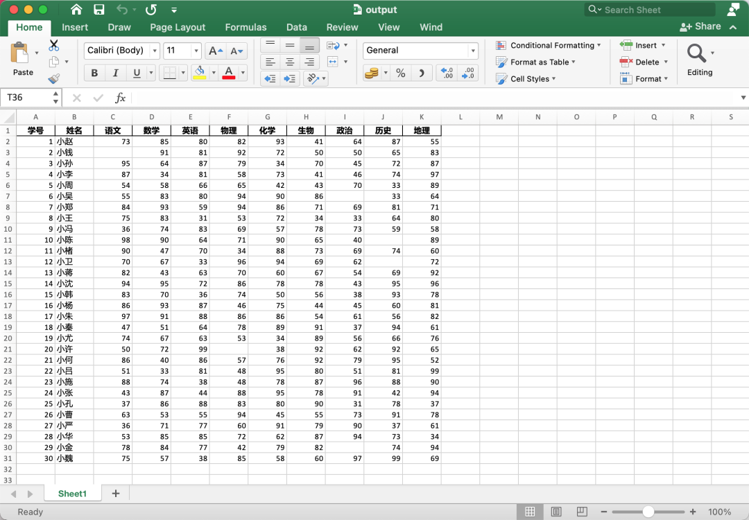 执行后得到的 Excel 文件如下: