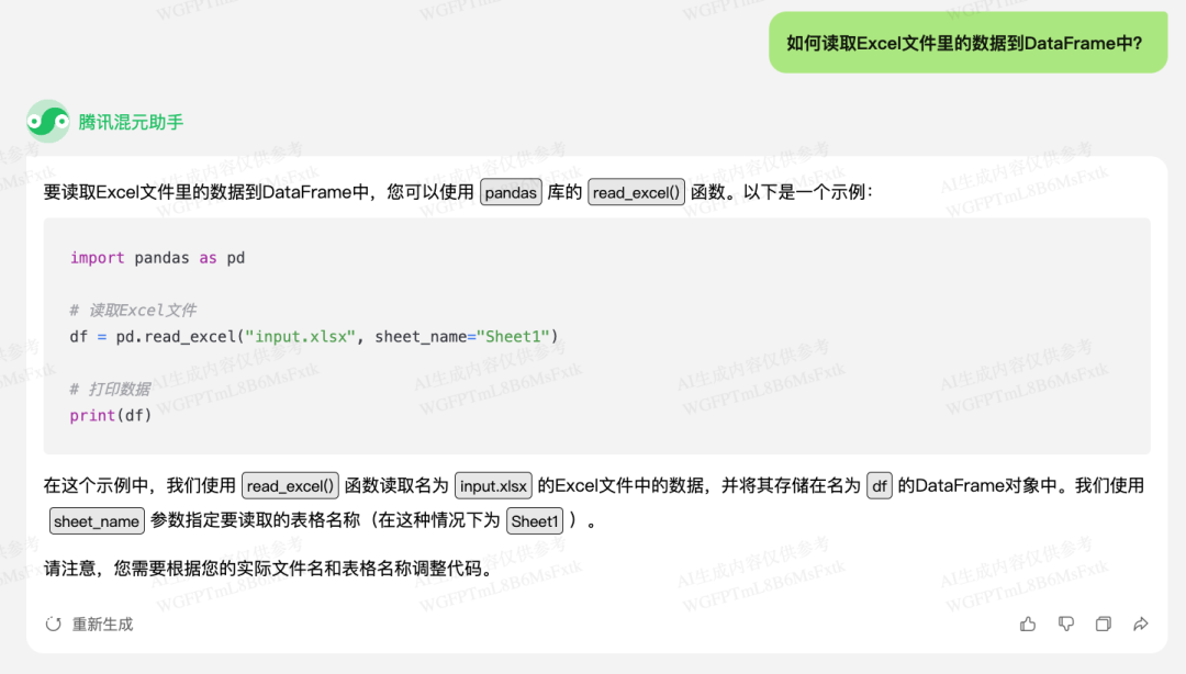 读取 Excel 数据的代码很简单,在混元给出的代码上改一下文件名就可以用了: