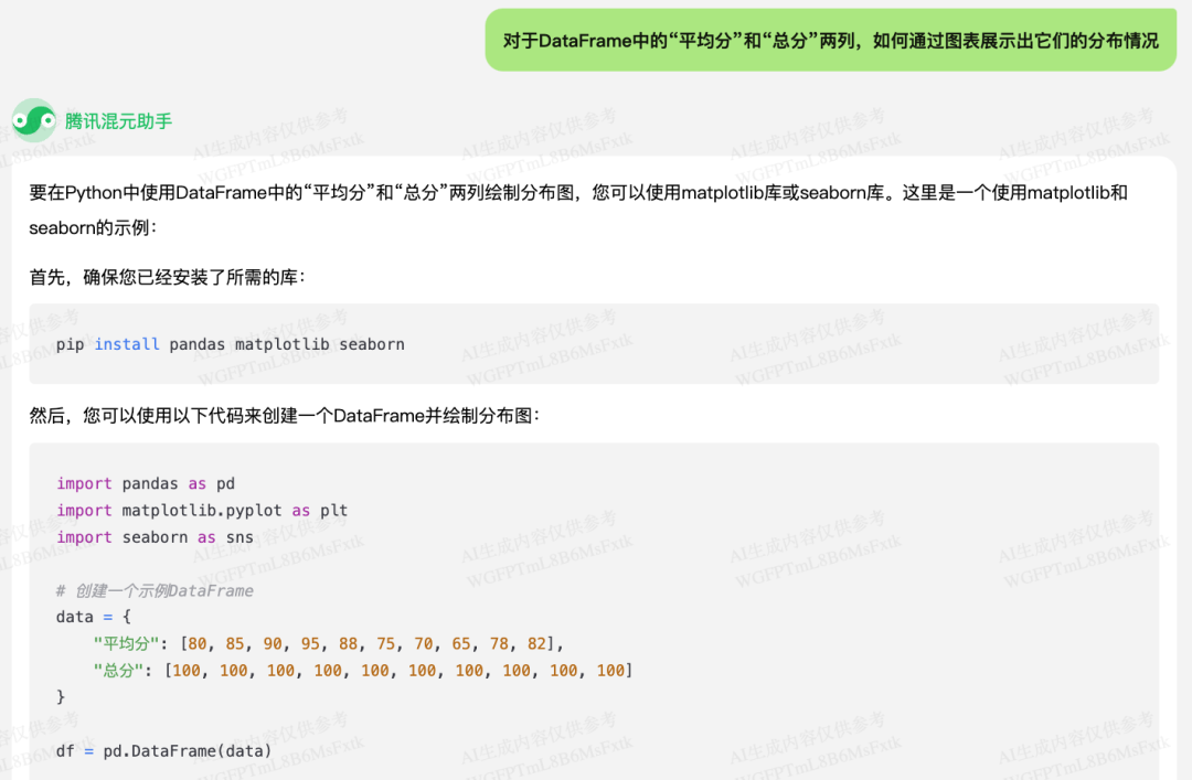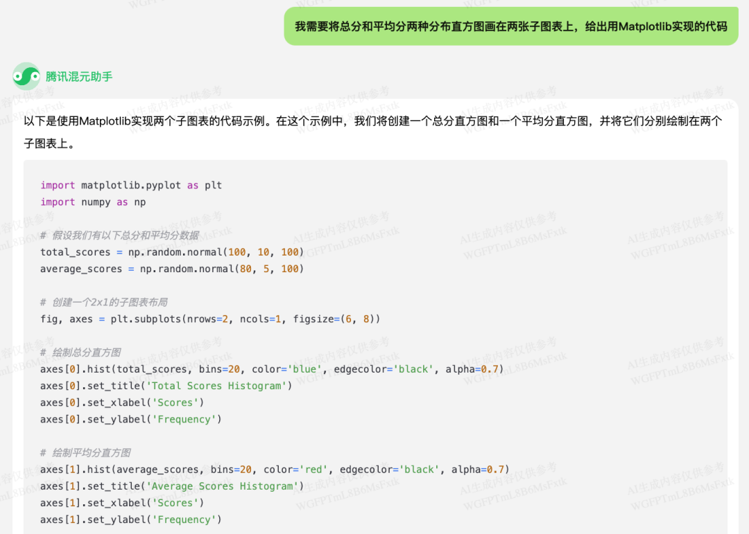从结果上来看,混元的确可以给我们在开发程序时提供帮助,提高开发效率。尤其对于数据分析这种开发需求来说,会用到很多第三方模块中的函数,在过去需要频繁查阅文档和搜索网络来了解具体的用法和参数设置,现在借助于大模型,可以很方便地得到示例代码,稍加调整就可以应用在代码中,大大节省了时间。