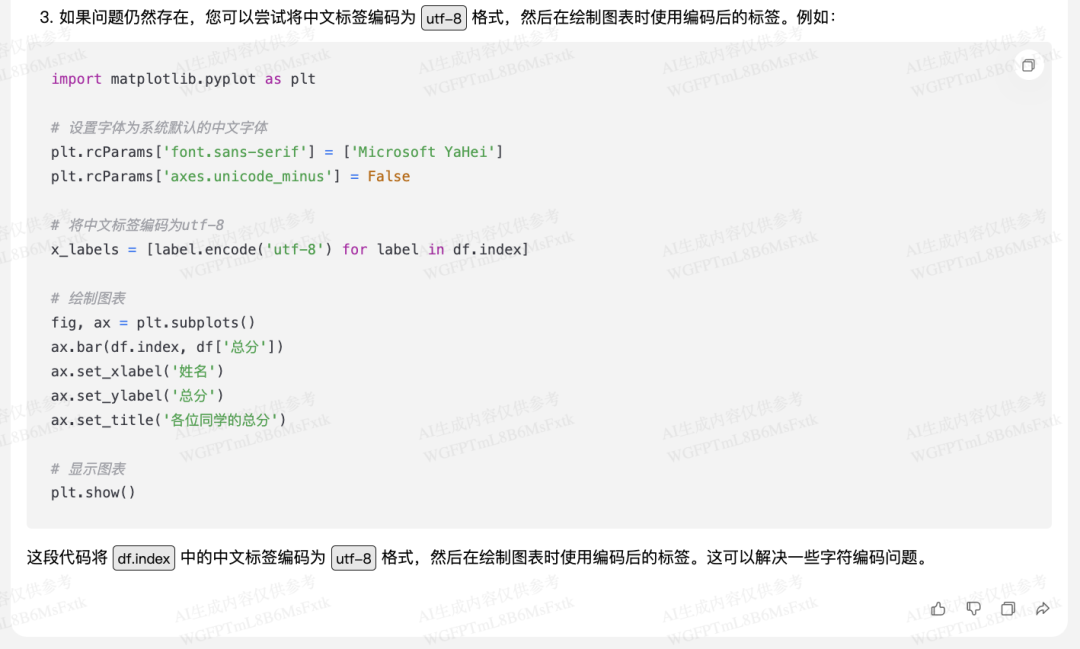 我来让它在 matplotlib 代码的基础上进一步修正,seaborn 的我们暂时就不用了。首先是中文显示的问题: