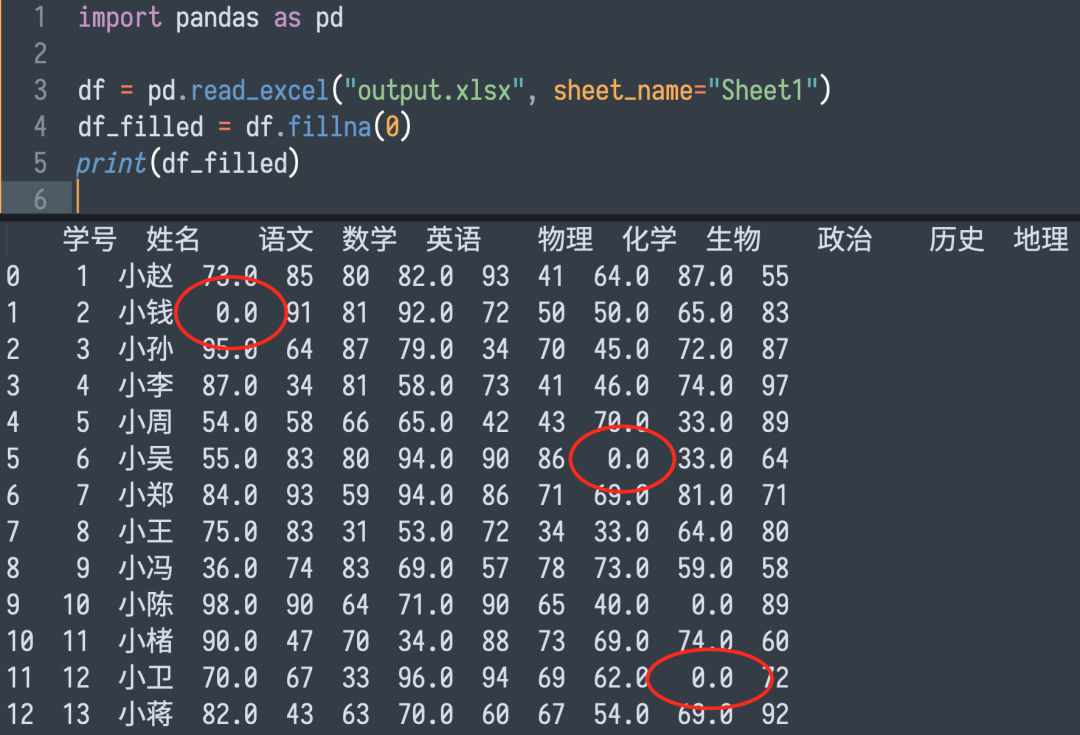 将 .fillna(0) 方法添加进上一步的代码中: