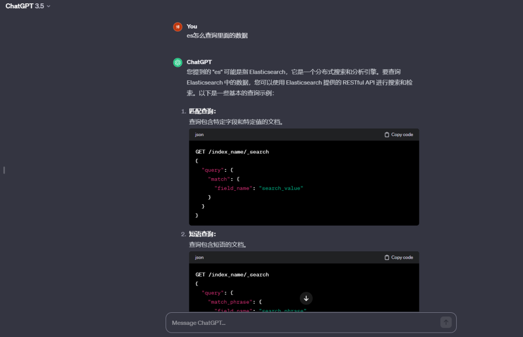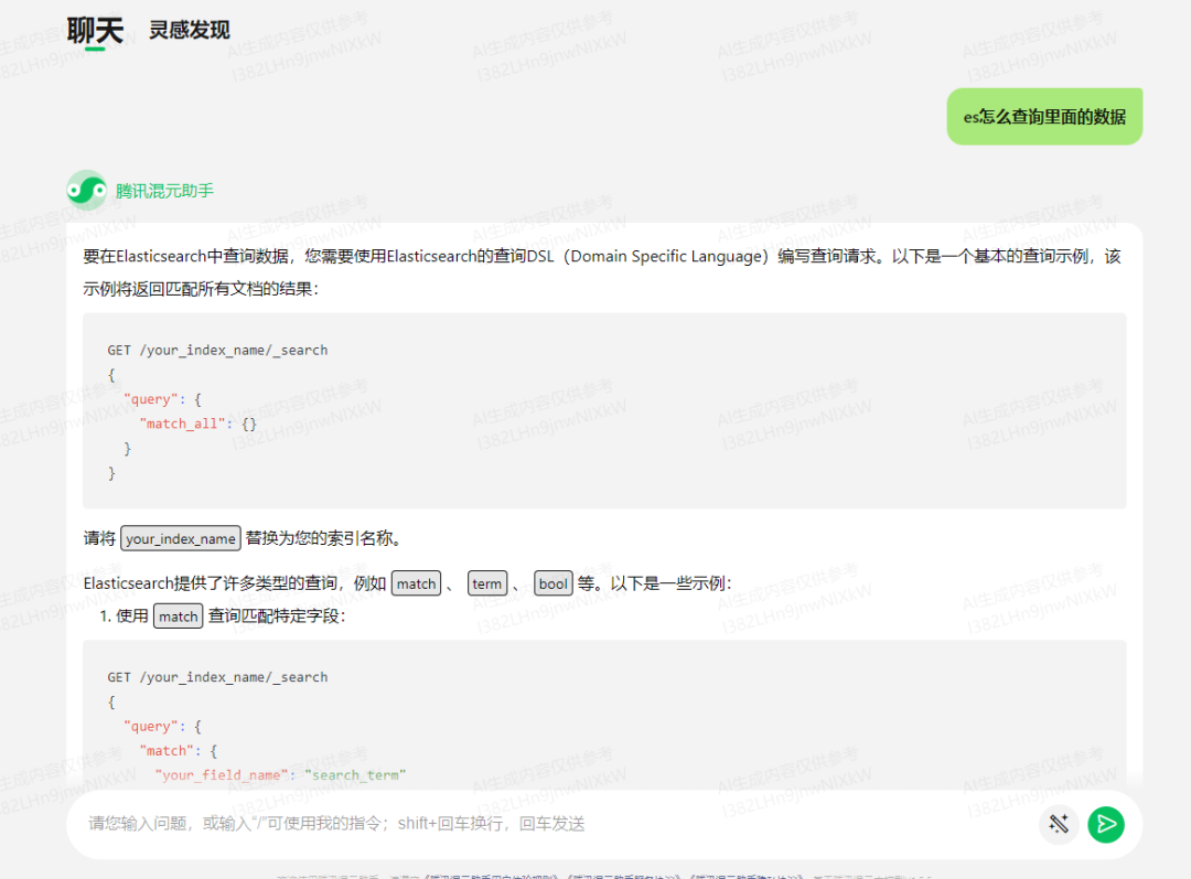 No2:我之前没接触过es,然后最近测的业务需要查里面的数据 ,我就问ai我要怎么查数据: