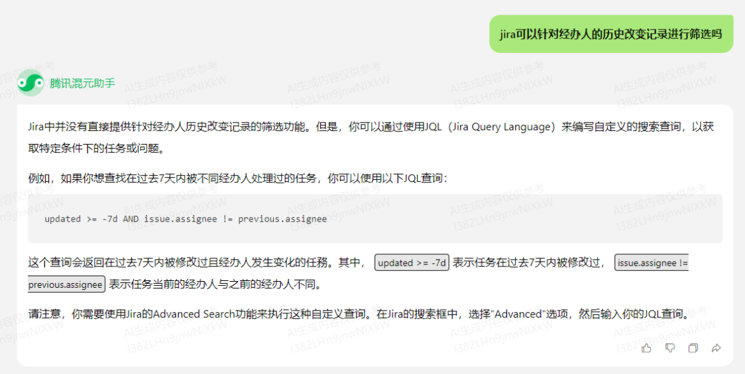 说实话,jira我之前都没用过,也就到了现在这个公司才开始接触,我用的多的JQL查询一般也就是查 经办人 = 自己,并且状态不是完成状态的单子进行监控,像这种经办人曾经是某个人的,我还不知道怎么去查