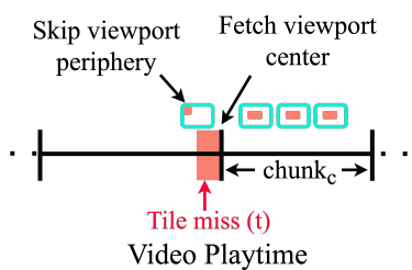 Dragonfly 的核心贡献是主动跳过(proactive skipping),即主要流中的一些视口 tile 可以选择被跳过。这基于两个观察:首先,用户可能会容忍偶尔降级(甚至缺失)内容,尤其是视口的某些部分(例如,位于边缘的部分)。其次,主动跳过 tile 的获取提供了可以用以增强用户体验的额外自由度,例如,可能希望跳过一个截止时间更紧急、仅有少量帧受益且位于视口边缘的 tile ,并取而代之以以更高质量获取一个稍后需要但在多个帧中位于视口中心的 tile 。
