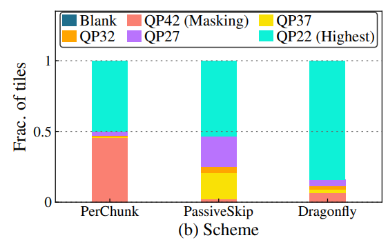 对质量的敏感度: 在决定每个 tile 使用什么质量时,Dragonfly 考虑到更高质量的编码对于某些 tile 可能更为关键的事实。