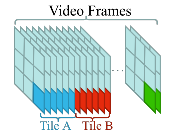 图 1 基于 tile 的流式传输:视频在时间上被分割成 chunk,而这些 chunk 在空间上被划分为 tile