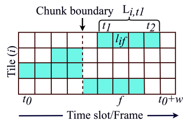 ,即在时间 𝑡 时获取 tile 𝑖 的累积位置分数。通过预先计算不同 tile 到达时间的累积分数,减少了调度算法需要执行的计算,如后面将看到的那样。在时间窗口