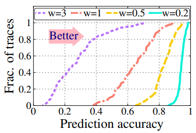 图 2 视口预测的准确性(即被预测的视口中的 tile 的比例)随着更大的预测窗口而急剧下降