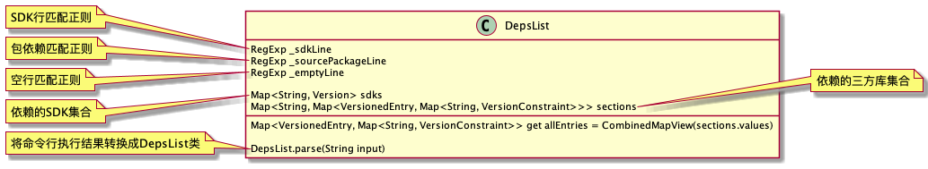 /// 执行 flutter pub deps -s list 命令,获取命令行执行结果