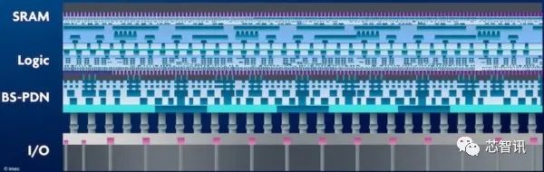 然而,随着晶体管越来越小,密度越来越高,互连线和电源线共存的线路层变成了一个越来越混乱的网络,堆栈层数也越来越多,可能需要穿过10 到 20 层堆栈才能为下方的晶体管提供供电和数据信号。