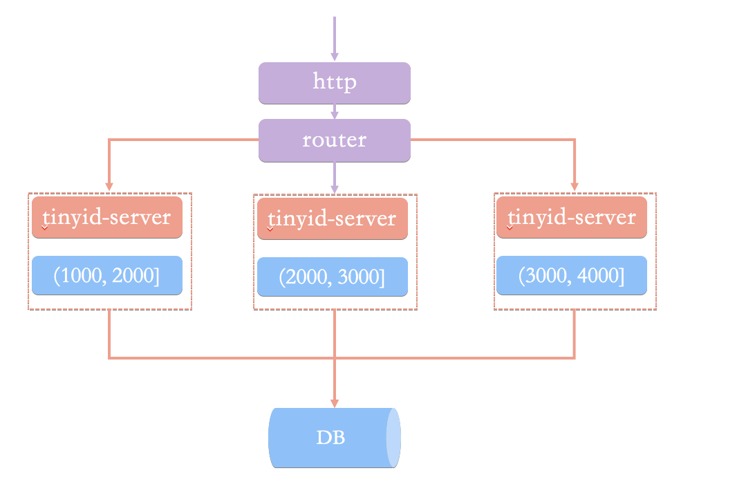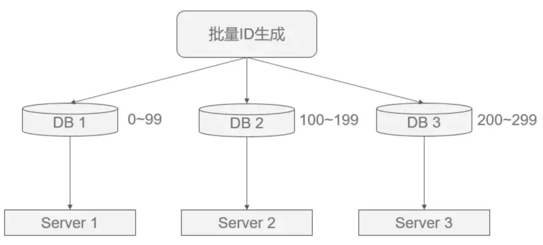 核心思想是使用单台数据库批量的获取自增ID,再分给不同的机器去消费。这样数据库的压力也会减小到N分之一,且故障后可坚持一段时间,同时避免固定步长带来的扩容问题。