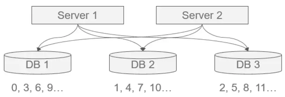 但可能你的业务快速增长,3台MySQL都不够用了。再扩容就又出现无ID初始值可分的窘境。因此,这种方案的优缺点非常明显。