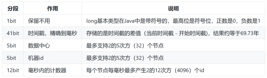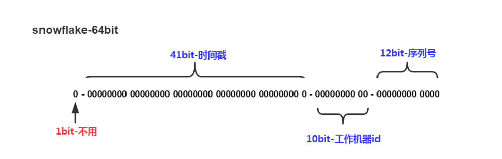 1位符号位标识 - 41位时间戳 - 5位数据中心标识 - 5位机器标识 - 12位序列号