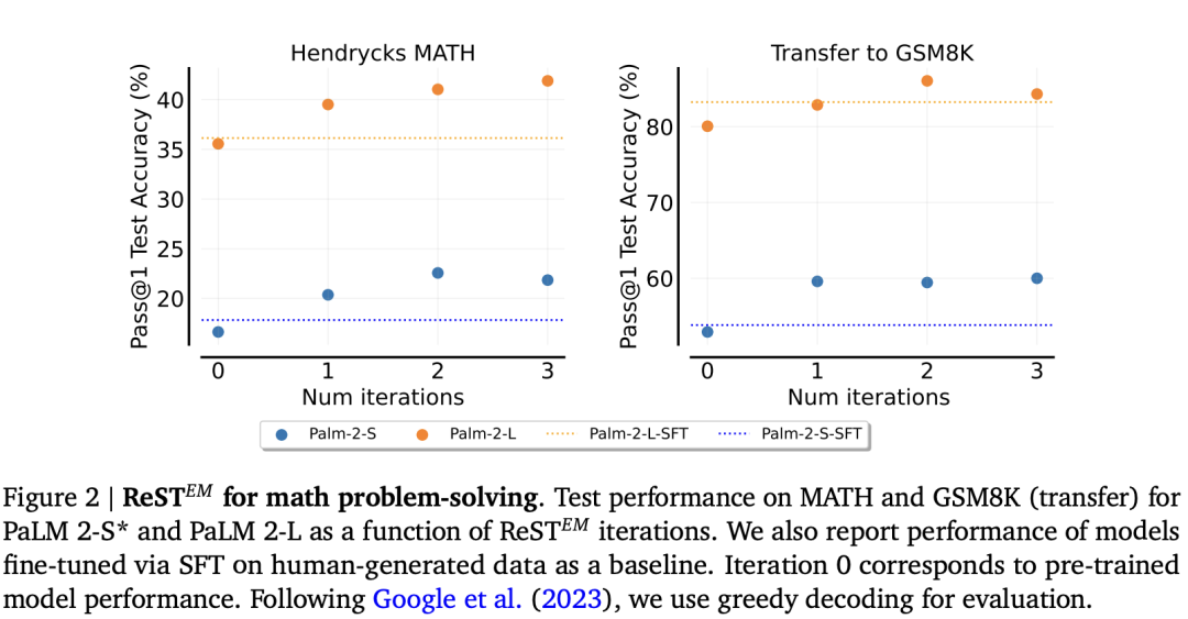 有趣的是,图 2 和图 3 显示,对模型生成的解决方案进行微调的效果大大优于使用人工编写的解决方案,尤其是 PaLM 2-L模型。