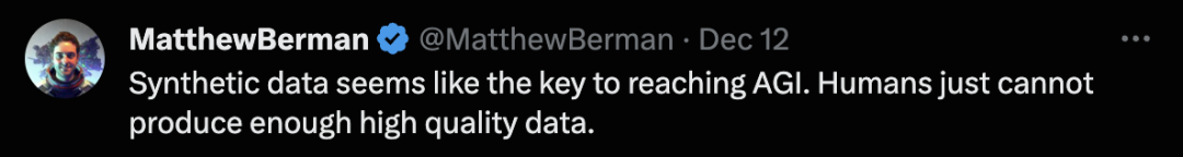 还有人认为,因为人类无法产生足够多的高质量数据,「合成数据」似乎是实现AGI的关键。