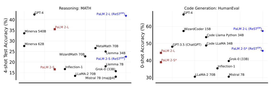 在MATH高级推理和APPS编码基准测试中,使用PaLM-2模型进行测试后,发现