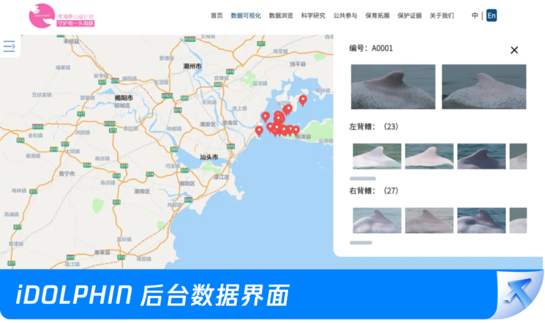 如今在iDOLPHIN小程序上,已积累36808张白海豚背鳍照片,累计识别白海豚个体2698头,已将5个种群的数据可视化,并且,单张中华白海豚图片识别准确率能达到89.55%以上。